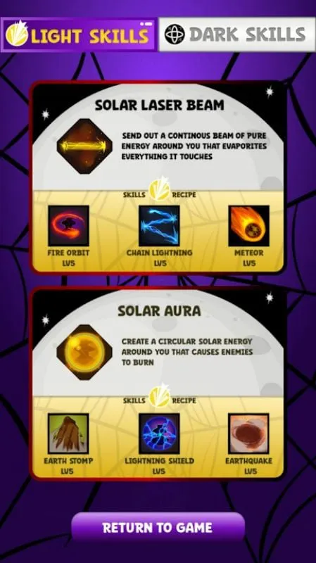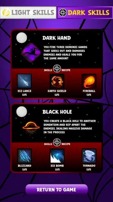 尝试光明和黑暗派系的不同技能组合,发现强大的协同作用。升级您的技能以增强其有效性,并根据您喜欢的游戏风格定制您的 build。